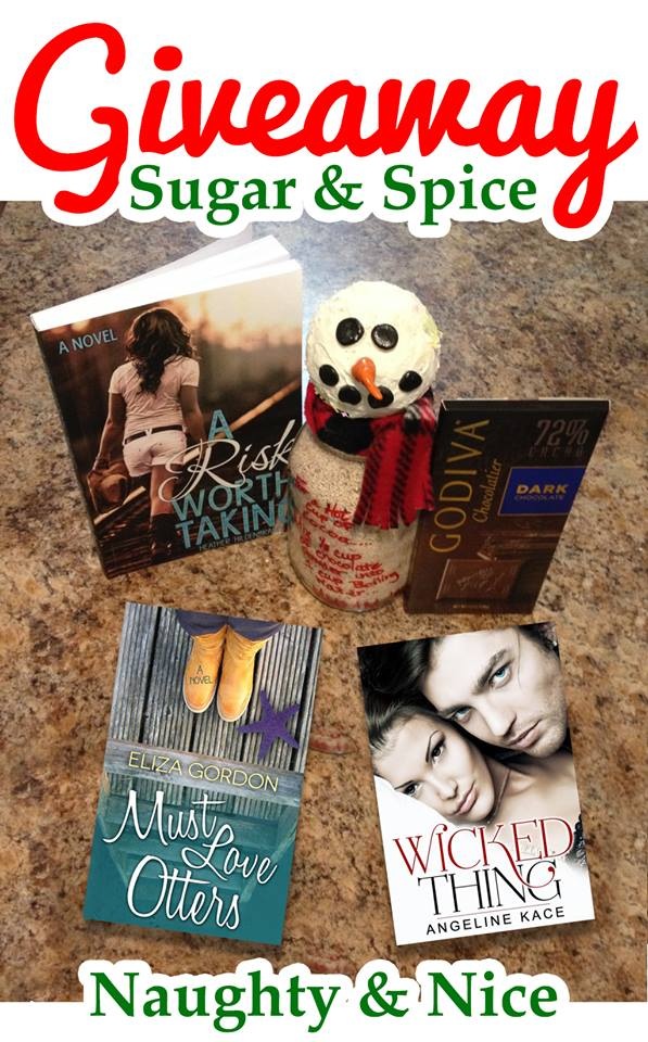 Enter to win a signed paperback of A Risk Worth Taking, an ebook of Must Love Otters by Eliza Gordon, an ebook of Wicked Thing by Angeline Kace, and a coca snowman jar by clicking this Rafflecopter Link.